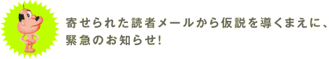 新たな仮説がみつかり次第、また報告するつもりだ。