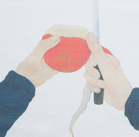 リンゴの皮をむく手をじぶんの視点から。