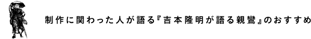 吉本隆明さんによる親鸞の本ができました。 750年前にこの世を去った親鸞が どのような考えをもった人だったのか、 吉本隆明さんの5本の講演による 親鸞の思想の「読み解き」に、 用語解説、コラム、写真、地図、年表を織り交ぜて いろんな角度から近づいていけるような 読みものにしました。 5本の講演音声420分が入った、 パソコン再生用のDVD-ROMつきです。