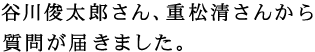 本になった『谷川俊太郎質問箱』には、谷川さんのご友人で