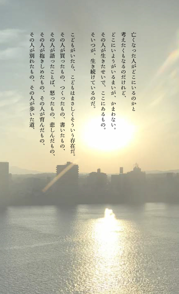 本のなかには、ぜんぶで239のことばが収められています。すっと読めるような短いことばが多いですが、ひとつのエッセイをまるまる収録したような長いものもありますし、連作のようになっていることばもあります。