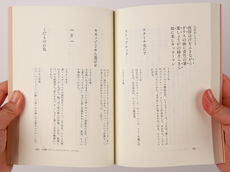 ことばを扱うことなので、その日から 真似がしたくなります。 鉛筆をもったその瞬間、その世界の広大さ、水源の深さに 唸ることになるかもしれません。 さっそく真似をして「おもしろがる側」ではなく 「おもしろくなる側」に飛び込んでまいりましょう。 土屋耕一さんのように、軽やかに、おしゃれで、たのしく。 |