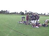 | 第18回 ブーメラン世界大会への道2000<その5> アロハ! じゃなくて 毎度! トギーです。 <その5>は「団体戦前日の不安」。 <その4>で書いたとおり、インターネットにも繋がらず、 日本との通信が途絶えてしまったトギーチームは、 軽く身体をほぐすためにフィールドに向かったのだ。 フィールドは、サッカーグラウンドが 5面ぐらいとれる広い場所でした。 日本では考えられない規模ですが、 世界大会となると、これでも狭いのだ。 100名近い選手が、あちこちでブーメランを投げるので、 広さも相当必要。 ![]() 軽く練習していたのだが、各選手に不安の色が……。 風がむちゃくちゃ強いのだ。 今日だけかと思ったら、 メルボルンは風の強い日が多いとのこと。 ひどい日は台風なみと言うから、さあ大変。 ブーメランは風が天敵なのだ。<第9回参照> 「凧でもあげようか!」などと言いながら 帰ってきたのねん。 その後、キャプテンミーティングに参加。 その議題でも、風の問題が大きなポイントだったのだ。 風が強すぎたら、中止および延期があるとのこと。 団体種目は合計で15種目。 全てが消化されなかった場合は、 「優勝チームなし」ということが決定。 そして、もう一つの大きな問題が……。 英語! 何を言ってるのか、トギーには「わからんのだ」。 しょうがないので、ずっと頭を縦に振ってました。 ロックバンドのドラマーのようになってしまったトギーは、 少々不安を抱えつつ、団体戦前夜を過ごしたのでした。 (つづく) |