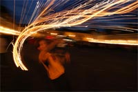 第73回 フランス世界大会への道<その3> 今回の遠征の宿舎は学生寮でした。 各部屋に机や棚が設置されていて、 収納スペースは完璧! しかもシャワー付き! なかなかの住み心地! と喜んでいたら、夜の気温が低く大変でした。 日本では40度近くの気温を記録していたのに、 フランスでは20度を切ることもしばしば。 みんな風邪を引かないように、かなりの厚着をしてました。 ちょうど同じ時期に、自転車レースの ツールドフランスも行われていたようですが、 寒さで体調を崩す選手もいたそうです。 到着した次の日、肩慣らしのため、 早速フィールドに向かったのだ。 今回の世界大会のフィールドは、かなり長方形。 とは言っても、日本とはレベルが違います。 150m×500mぐらい。 これだけの平らで広いスペースって、 日本にはなかなか無いんですよね。 この広さだと、移動するだけで疲れちゃいます。 軽く練習を済ませて、その日は終了。 翌日は、昼間はエントリー、夜は開会式。 宿舎から徒歩15分ぐらいの場所に連れて行かれました。 そこは駅前広場って感じで、かなり大きなスペース。 しかも、ちょっとしたお祭り状態で人がわんさか。 1000人以上はいる感じでした。 そんな場違い(?)の中、開会式がスタート。 マイクで各国のチームが紹介され、 選手一人一人が、ギャラリーの前へ。 フランスの田舎町に、世界各国から“外人”が来たので、 フランス人も驚いたでしょうね。 しかも、広場では、 ビュンビュンとブーメランを飛ばしていましたからね。 選手紹介が終わった頃には、すっかり日没。 暗闇の中、開会式もクライマックスへ。 オーストラリアチームの選手が花火を用意。 なんと、ブーメランに花火をつけて投げちゃいます。 これがきれいなんですよ。 夜空にクルクル火の粉が舞ってかなり幻想的。 ![]() ![]() 遠巻きに見ていたたくさんのギャラリーも、 この光景にはウットリだったでしょうね。 ちなみに、花火付きといってもブーメランですので、 もちろん戻ってきます! 投げた選手は気合いでキャッチしてましたよ。 そんなこんなで、幻想的な開会式も終了。 次回はいよいよ団体戦スタートです。 トギー(栂井靖弘) KBN(関西ブーメランネットワーク) http://www.kbn3.com |