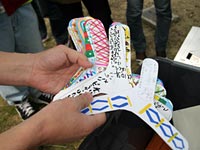 第79回 タイムカプセル ごぶサターン!トギーなのだ。 今回は、ちょいと夢のあるお話。 トギーはブーメランを始めた頃から、 普及のためにあちこちの講習会に行っているのだ。 呼んでいただければ、 東奔西走、出来る限り足を運んでます。 で、10年前、 とある講座に呼ばれたときのこと。 それはタイムカプセルの講座でした。 子供たちがタイプカプセルを作って、 その中に記念品を入れるという、 ちょいと変わった内容でした。 その講座の中で、 みんなと一緒に紙ブーメランを作成したのだ。 厚紙に色を塗り、ハサミで切り取ります。 普通ならこれで完成なんだけど、 今回は「タイムカプセル」ということで、 その紙ブーメランに、子供たちが夢を書き込むのだ。 10年後の自分を予想して、 思い思いの気持ちを書く・・・。 10年後、 その夢が、 ブーメランに乗って、 戻ってくるように! みんなの夢が書かれた紙ブーメランは、 タイプカプセルの中に入れられました。 それから10年の年月が流れ・・・。 「いよいよ開けるよ!」 と、今年の初めに当時の担当者から、 電話がかかってきたのだ。 トギーはもちろん、 この講座のことも、 タイムカプセルのことも、 ずっと楽しみに、、、いや、 すっかり忘れてました。。。 で、いよいよタイムカプセル開封当日。 当時の男子、女子が、 立派な男性、女性に成長して集合。 みんな顔がワクワク。 トギーも10年前の紙ブーメランが出てくるので、 かなりワクワク。 そして、いよいよオープン! 出てきましたよ、10年前の紙ブーメランが! ![]() ![]() しっかり密封されていたので、 全く色あせてませんでした。 さらに、 出てきたばかりの紙ブーメランを投げてみたら、 ちゃんと戻ってきましたよ! 過去から未来へ、 10年越しにブーメランが戻ってきたのだ。 いやいや、感動でした。 みんな嬉しそうだったけど、 たぶんトギーが一番喜んでましたよ。 こういうのは、本当に夢があるので、 また機会があればやりたいですね。 ところで、 10年前のブーメランは戻ってきたけど、 10年前のみんなの夢は叶っていたのかな? ってことで、10年前から戻ってきた 紙ブーメランのお話でした。 トギー(栂井靖弘) KBN(関西ブーメランネットワーク) http://www.kbn3.com |