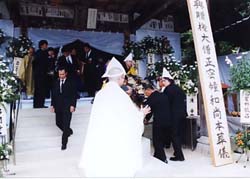 栄福寺本堂を出堂するじいちゃん