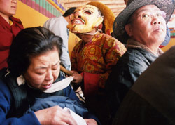 踊っていたお坊さんがお面を脱いで、