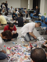 グループで雑誌や写真の切り抜きを張り合う、