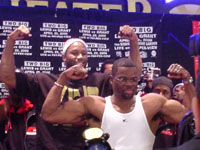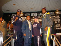 | ニューヨークから直送! ヘビー級統一タイトル戦、現地レポート第2弾 いよいよ「TWO BIG」2m級の大男の戦いが 近づいてきました。 現地ニューヨークでは、水曜日に共同会見、 木曜日に計量が行なわれました。 共同会見ではルイス選手が非常に落ち着き、 そしてリラックスしていたのが印象に残りました。 会見でルイスは、特にグラント選手のトレーナー、 ドン・ターナーをこき下ろしていました。 ターナーはホリフィールドのトレーナーとして 打倒ルイスを2度目指しましたが、 いずれも失敗に終わっています。 ボクシングはトレーナーの戦いでもあります。 選手の長所、短所を理解し、相手を分析。 当日の相手の戦略を読み、その上を行く戦術、 技術を教え勝利へ導く大切な参謀です。 試合では技術的なことはもちろん、 精神的にも選手を奮い立たせ限界以上の力を 引き出す役割もあります。 ルイス選手のトレーナーは 天才エマニエル・スチュアード。 オーソドックスですが、確実に相手を捕らえることを 基本から練習させるタイプです。 最近ではあのナジーム・ハメド選手にもついています。 ルイスには徹底して、長いリーチを使ったワン・ツー、 そして接近しての右アッパーを教え、 結果を出しています。 派手さはありませんが、 ルイスの体格を考えると非常に合理的作戦であり、 今回もスタイルを変えることはないでしょう。 つまり今回は、 グラント選手がターナーとどんな作戦でくるのか? が試合の一番の焦点となります。 ルイス選手よりも大きな身体を使い、 ロングから攻めるのか? 意表をついて接近戦を臨むのか? どちらにしてもルイスのワン・ツー、 アッパー対策は授けていなければ勝てません。 あとは選手が実際できるかどうか、にかかります。 会見の写真をみればわかりますが、 中央の2人はセミファイナルで試合をする、 IBF世界フェザー級チャンピオン、 ポール・イングル選手と 挑戦者のジュニア・ジョーンズ選手です。 ちなみにフェザー級は126Lbs(57.1kg)です。 写真からヘビー級の2人の大きさがわかるでしょう。 絶対にリングが小さく見える迫力の試合になるでしょう。 翌日は計量が行なわれました。 場所はMSG正面入り口です。 カメラ位置取りをして待つこと1時間30分。 ルイス選手は247Lbs(112kg) グラント選手は250Lbs(113.4kg)でした。 2人のウエイトは、 我々の想像以上に差がありませんでした。 これから推測すると、 やはりルイスのパワーがグラントを上回りそうです。 グラントはスピードと距離でルイスの射程をずらし、 隙があれば右ストレートで勝負。 というパターンでしょう。 逆にルイスは相手のスピード、距離に迷わされず、 出てくるところを打ち、 当たり始めたらプレッシャーをかけ、 弱ったらたたみかける。 という展開になるのではないでしょうか? どちらにしても勝者はヘビー級戦線の中心となり、 タイソン選手、ホリフィールド選手、 クリチコ兄弟などのターゲットになります。 果たして英国の誇りルイスか? グラントがアメリカにタイトルを 持ち帰らせることができるのか? WOWOWでは4月30日(日)AM11:00から 独占衛星生中継いたします。 おたのしみに。 WOWOWスポーツ部 小田真幹 ご意見はこちらまで Boxnight@aol.com |