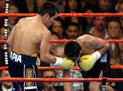 バレラ渾身の右アッパーがモラレスを捕らえる