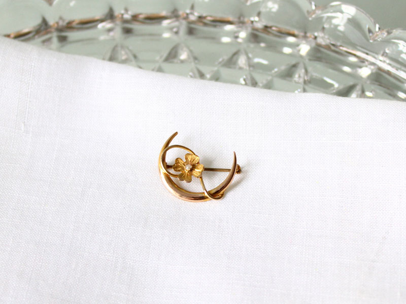金のクオリティを証明する「10K」という刻印が 裏の針の留め具に刻まれている。