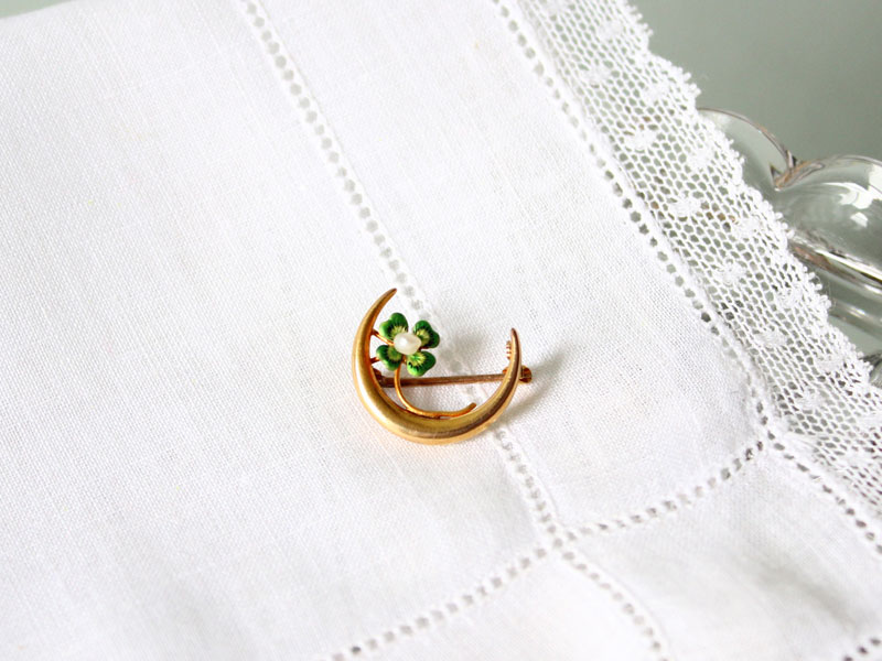先に紹介した「三日月のブローチ 1」と似ているが、 こちらはシードパールではなく、 形がいびつなバロックパール。