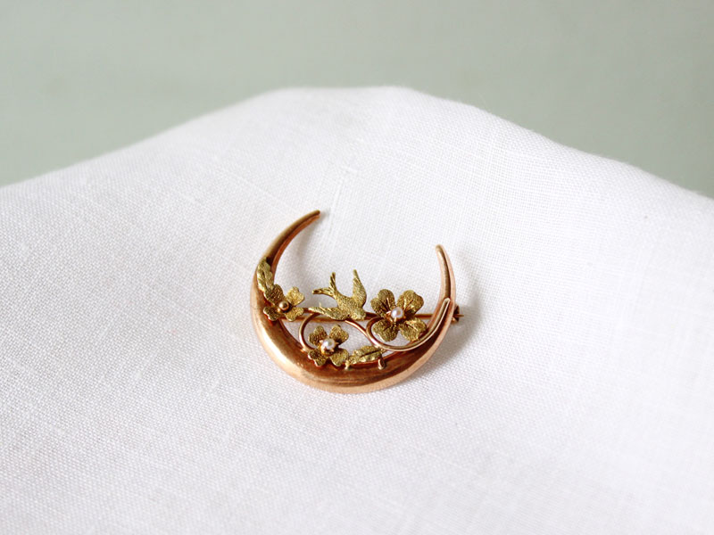 数あるハネムーン・ピンの中でもなかなか手に入らない 「三日月、クローバー、つばめ」の組み合わせ。