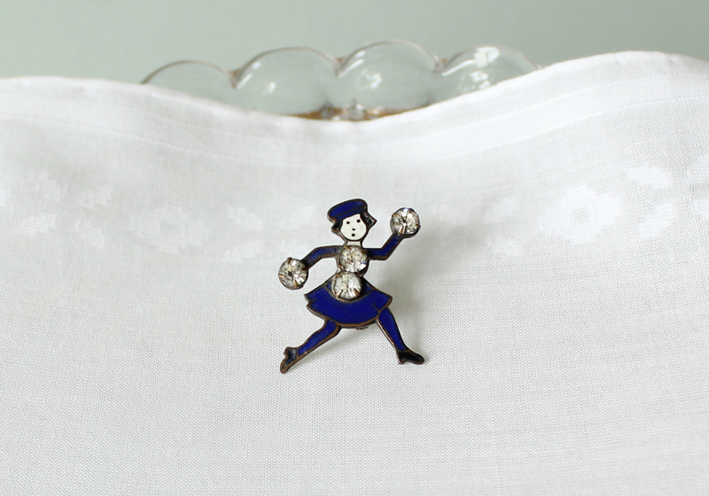 1930年ごろのアールデコの時代のもので、 エナメルに小さな傷みはあるが、 裏のピンのコンディションはとても良い。