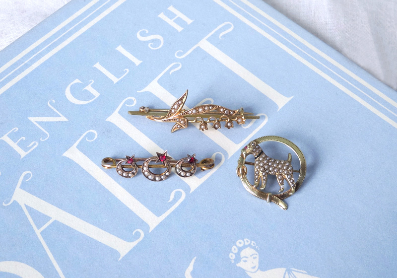 今月ご紹介するのは、 シードバールが使われた、1900年代初頭の3つのブローチ。