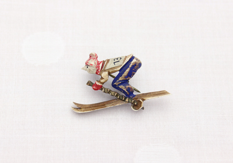 1920-30年頃に作られたもので、 手書きでブローチの裏に製造番号が記されている。 色のかすれ具合にヴィンテージならではの味、渋さがある。