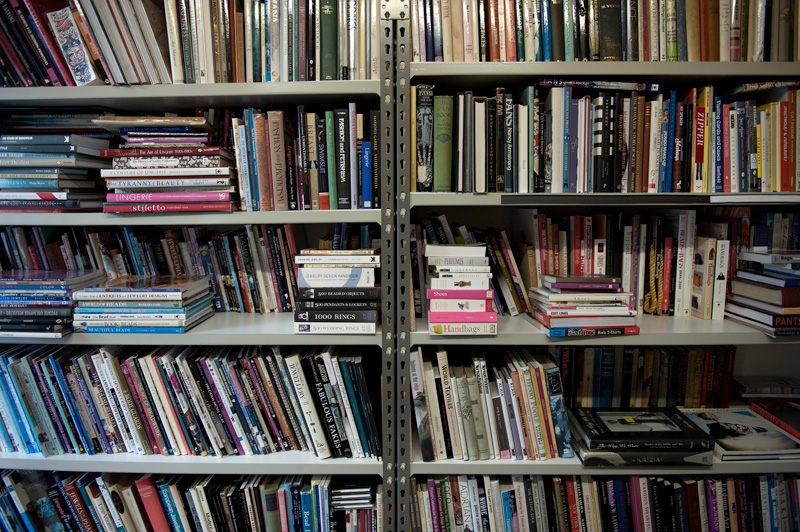 ジュエリー、ランジェリー、ハンドバッグ、靴、テキスタイルなどの本棚