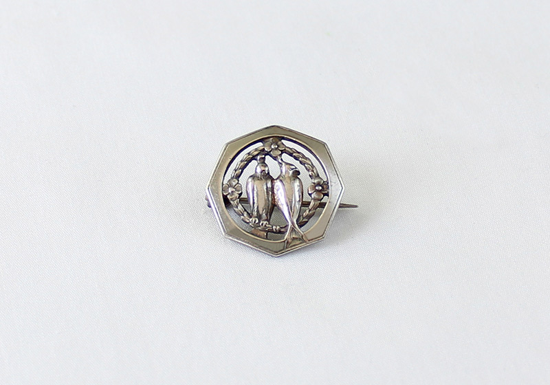 つがいの燕が、永遠を意味する輪に仲良くとまっている。 男性から女性へ贈られた特別な品だったのだろう。 輪には小さな花が3つあしらわれていて可愛らしい。