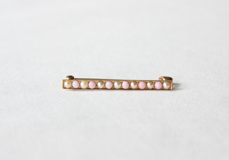 ピンク色の珊瑚と白いシードパールが交互にならんだ ヴィンテージの愛らしいブローチ。