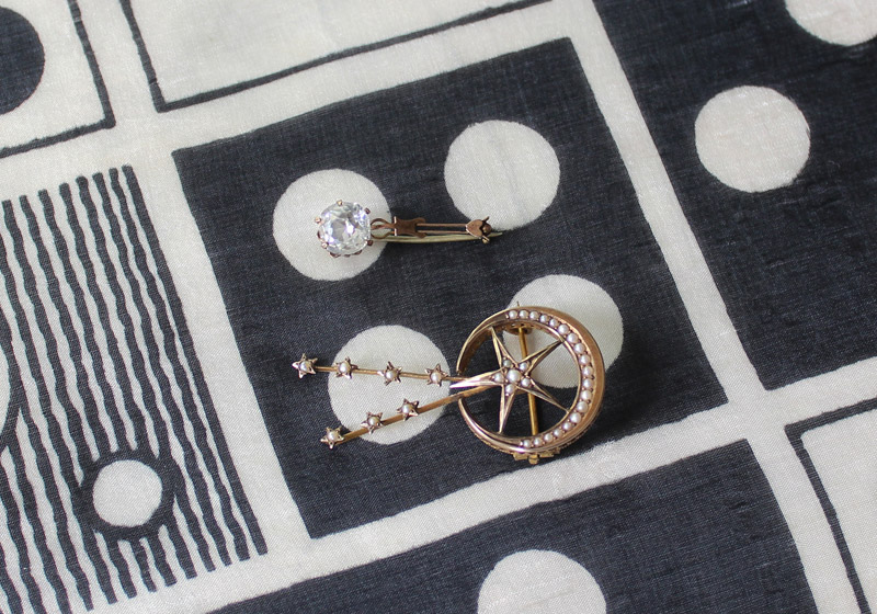 ハレー彗星が前回世間を賑わせたのは それもそのはず、1986年にやってきたハレー彗星は 人々が空に彗星を目撃した記録は紀元前のころから存在する。 ローマ帝国時代は、王や英雄が亡くなった折に しかし、天文学の研究が進むにつれて、 17世紀、イギリス人の天文学者エドモンド・ハレーは ジュエリーの世界に限定して考えたとき、 今月ご紹介する2つのブローチは、それらのほんの一例である。 次にハレー彗星が地球に接近するのは2061年とのこと。 ※参考文献 Roberta Etter and Stuart Schneider著 |
