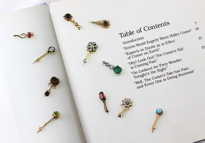 上の写真はもくじのページ。 本編で私が紹介したハレー彗星ブローチの仲間が載っている。