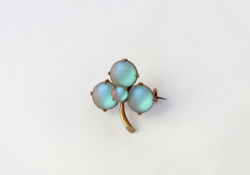 サフィレットはデリケートなガラスであるため、 この品のように、欠けにくいドーム型のカボションカットで 多く生産されていた。