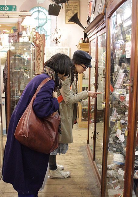 アンティーク・ハント中の三角さんと三國さん。