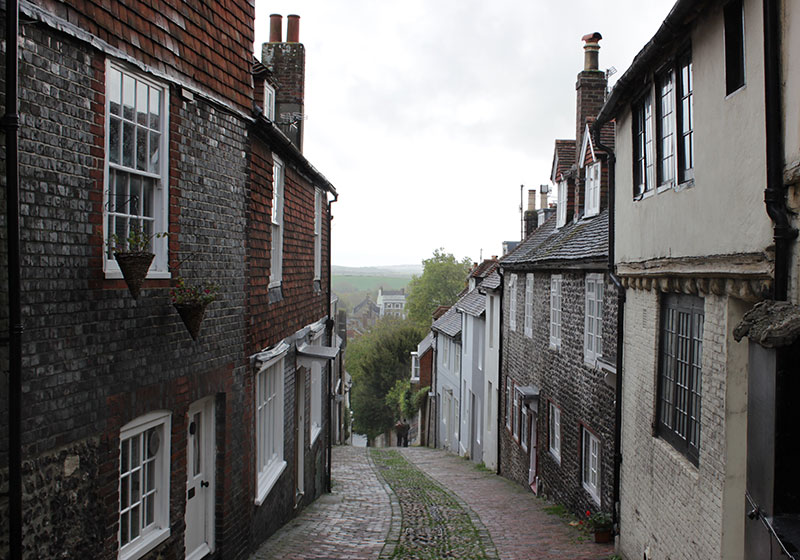 Lewesの坂を上がっていくと、このように、ときどき遠くの景色が建物の間から見えた。雨にしっとり濡れた、イングランドの丘陵。