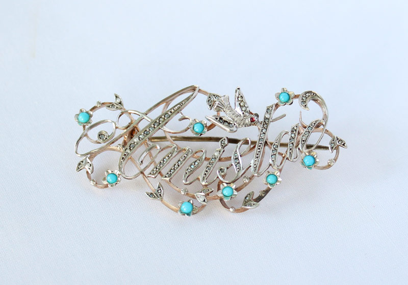 ブローチの裏に何も刻印がなく どこでどんなジュエリー職人によって制作されたのか、 はっきりとはわからない。 しかし、「友情」を意味する「Amistad」という スペイン語をわざわざ用いていること、 この品がイギリス国内で見つかったことなどから なんらかの形でふたつの国に関係する人物が、 特別な友へ贈った品だったと想像できる。