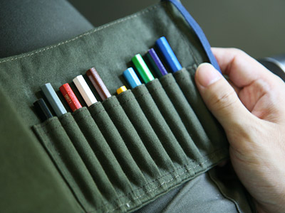 スケッチブックカバーが、色鉛筆ホルダーにも