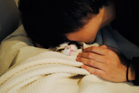 | 村上春樹さんのエッセイで、 猫が出産するとき、 自分のところに来て、 手を握ってあげると、 一匹ずつ生まれてきたっていう くだりがありましたよ。 |