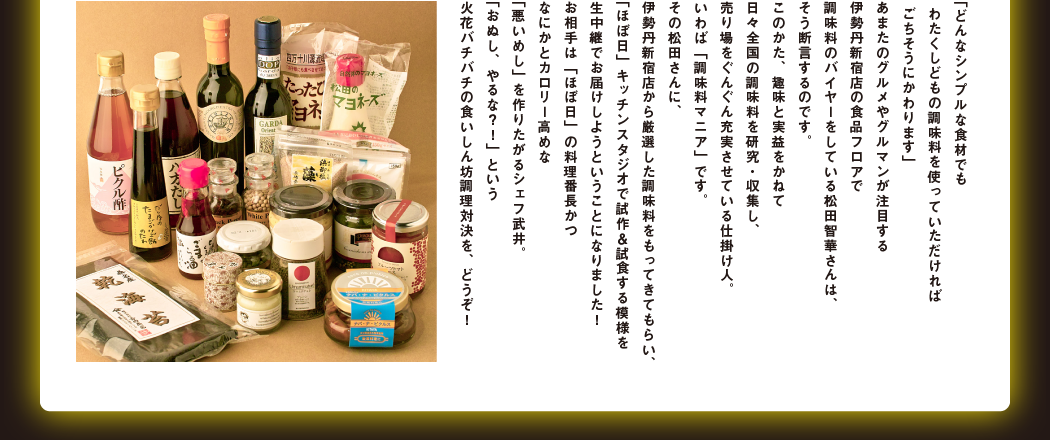 気になった「調味料」や「たまご料理」への質問や 番組へのご感想はぜひぜひ、 ハッシュタグ「#hobo_event」を入れて ツイートしてみてください。 番組中にお答えすることもできると思いますし、 ツイッターを通じてみなさんとやりとりしながら 配信をすすめていく予定ですよ。 |