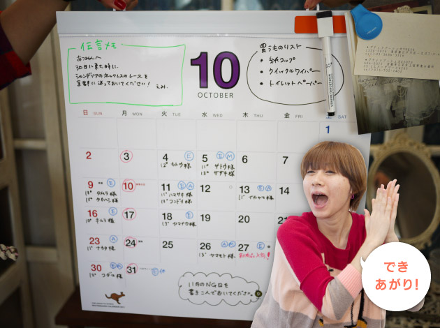・お客様の予定は、「時刻」と「名前」で記す。 ・スタッフはお休みの予定を自分でも書き込む。 ・メモ欄はメッセージボードに。スタッフはここをチェック!
