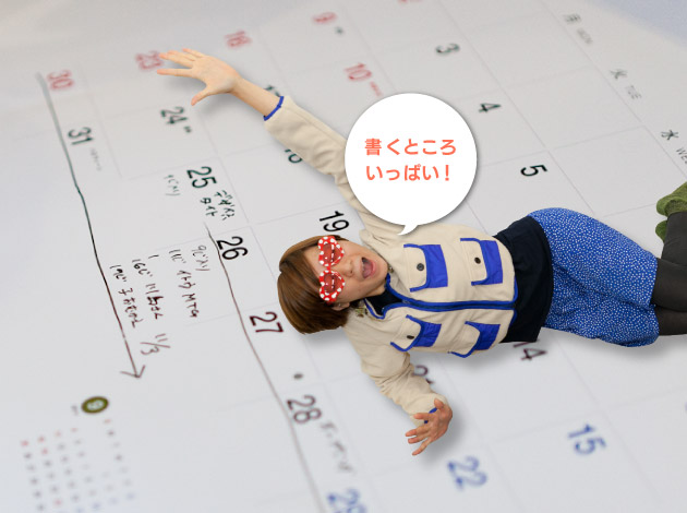基本的なスケジュールを書き込んでいきます。 デザインイベントに、打ち合わせ、取材に撮影‥‥。 忙しい日は、1日に打ち合わせや取材が3件も! でもホワイトボードカレンダーなら大丈夫。 大きなマス目で、余裕で書き込めちゃいます。
