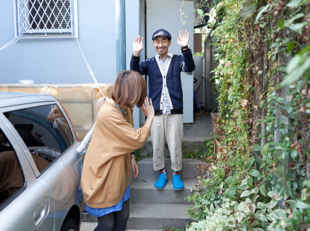 笑顔の幅さんに見送られて、カレンダー大使は任務終了。