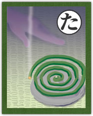 残り少ない蚊取り線香は、時間の経過もあらわしています。