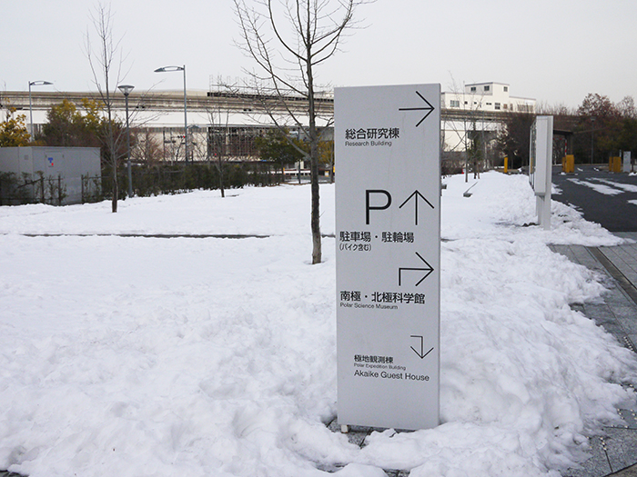 バスに揺られて着いたのは、雪の中の国立極地研究所。