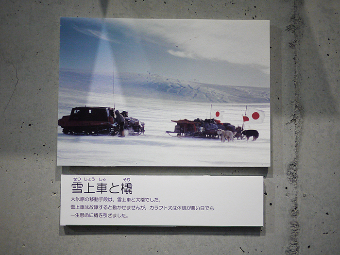 ▲移動手段は、雪上車とそり。さ、寒そうだ‥‥。