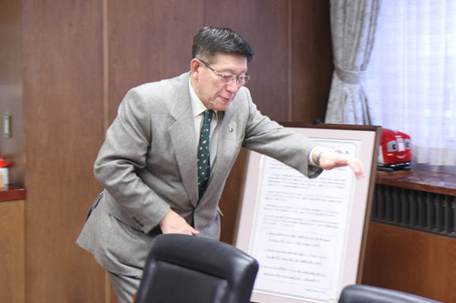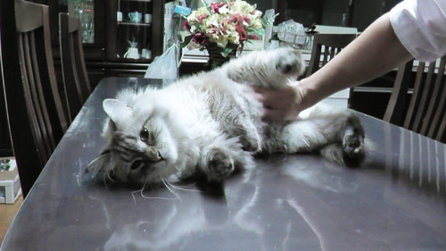 じゃあ、ニャーはメスだから、やっぱり知事に一番懐いて。