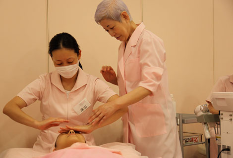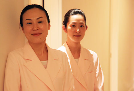 | 佐伯 | はい。 歯磨きをいくらていねいにして 気をつけていても お昼や前の夜に何を食べたか、 口臭として出てきてしまうものです。 トリートメント中はお客さまが 横になっていらっしゃるでしょう? 人間は、寝ころんだ状態のときに、 もっとも感じやすくなるんです。 匂いもよくわかるし、音も聞こえるし、 振動も感じやすくなります。 歩く音も響きますので、 スタッフはヒールのある靴を 履かないようにしています。 そして、なおわたしたちは いちばん敏感な、神経の集中している お顔の近くに座らせていただくことになります。 匂いという理由からも、 化粧はしないのが基本です。 |