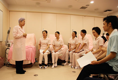 | 佐伯 | 私は、本物のエステティックを みなさまにお伝えしたいんです。 だから、ビューティシャンには お客さまのお肌や体調のことを ケアしてほしいのです。 その気持ちはちゃんと手に出るはずですから。 |