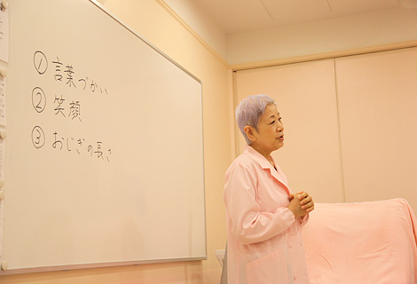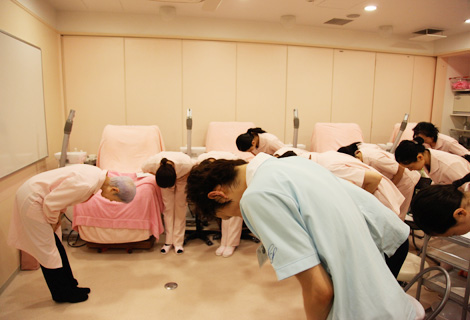 | 佐伯 | はい。特に、仕事の現場ではそうです。 人は見かけといいますが、 特に若い子たちは、どんなに施術がいい子でも、 ごあいさつで判断されてしまうんです。 若いというだけで、お客さまから 拒否反応が起こります。 ですが、きちんとしたあいさつができて、 この人はちゃんと自分を迎えてくれている、 ということがお客さまに伝われば、 それだけで、スッと 「よろしくお願いします」と お客さまは言ってくださると思います。 けれども一旦「なぜ若いこの子が?」と 思われてしまうと、 あとで、なかなか修正がきかないんです。 |