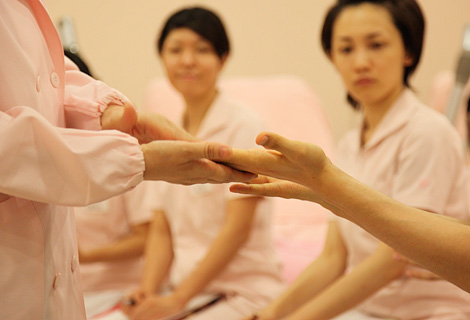 | 佐伯 | 同じ技術でも、例えば 手の大きさで 受けていただく感じ方も違います。 おしゃべりする人がいいという方もいれば、 しゃべらない人がいい方もいる。 ひととおりやって、選んでくださっていいんです。 |