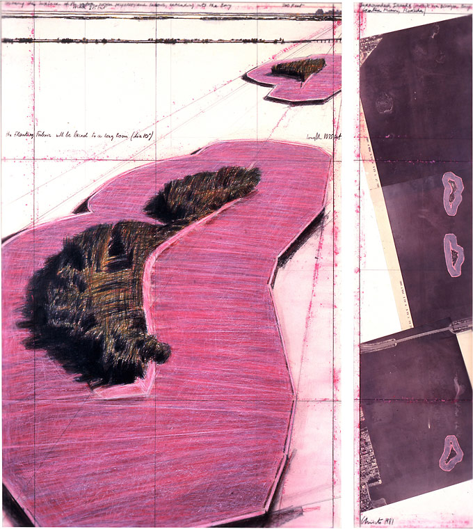 | クリスト | ドローイングなど紙の上の作品も プロジェクトのための「構想図」ではあるけれども、 屋外での一時的芸術作品同様、 それ自体のクオリティを持った作品なのです。 |