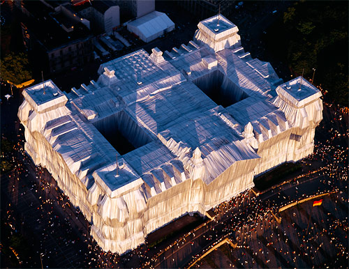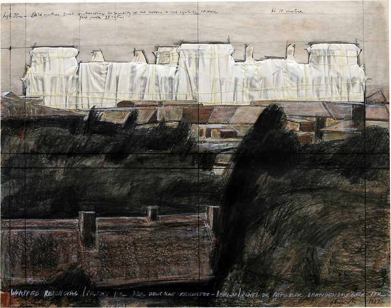| クリスト | たとえば、 この「包まれたライヒスターク」のコラージュは 1977年の作品。 |