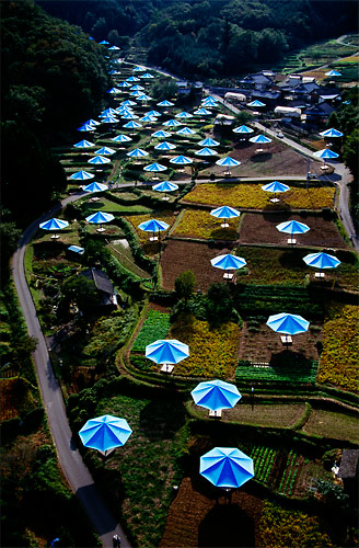 | クリスト | カリフォルニアと日本の茨城県の双方で 高さ6メートル、 直径8.66メートルの大きな「傘」を 合計3100本、立てた「アンブレラ」と同様、 「オーバー・ザ・リバー」は 「郊外型プロジェクト」と言うことができます。 |