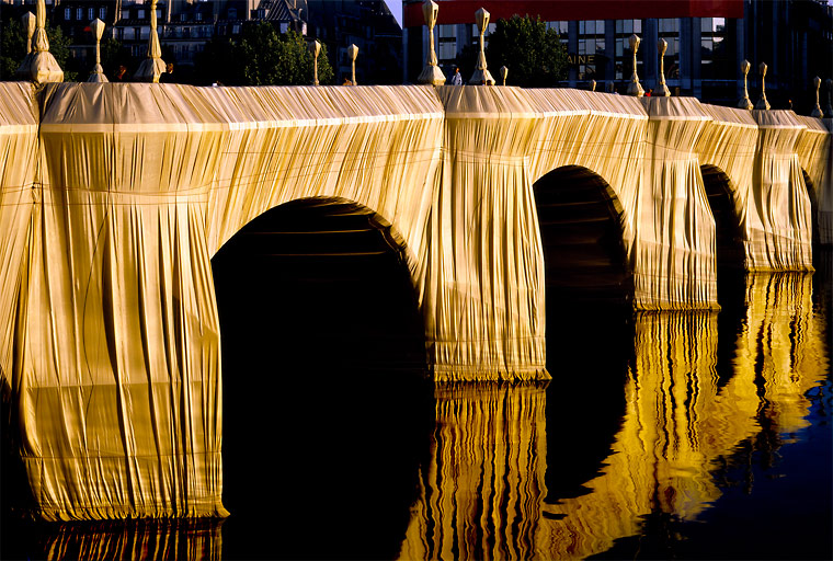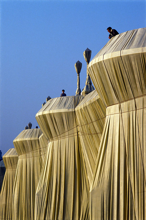 | クリスト | たとえば‥‥「オーバー・ザ・リバー」の 大もとのアイディアが生まれたのは 1975年から10年の時間をかけて 実現にこぎつけた パリの「包まれたポン・ヌフ」の作業途中でした。 |