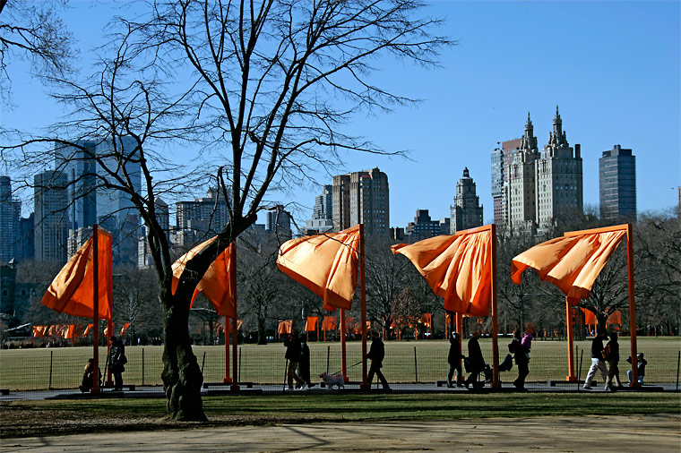 | クリスト | 私たちのプロジェクトは すべて「季節」に関連づけられています。 たとえば、セントラルパークに 7503基の「布を垂れ下げた門」を設置した 「ゲート」は、 冬のプロジェクトです。 木立から葉がすべて落ち枝だけになる‥‥ことが プロジェクトの前提になっていましたから。 |