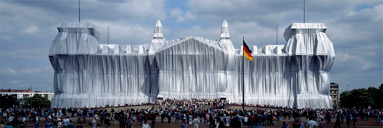 | クリスト | それに対して、大都市の内部で行った 「ゲート」には400万、 「包まれたライヒスターク」には500万の人が 見に来てくれました。 ですから、見物客が何人くるだろうというのは、 あまり考えることではないんです。 |