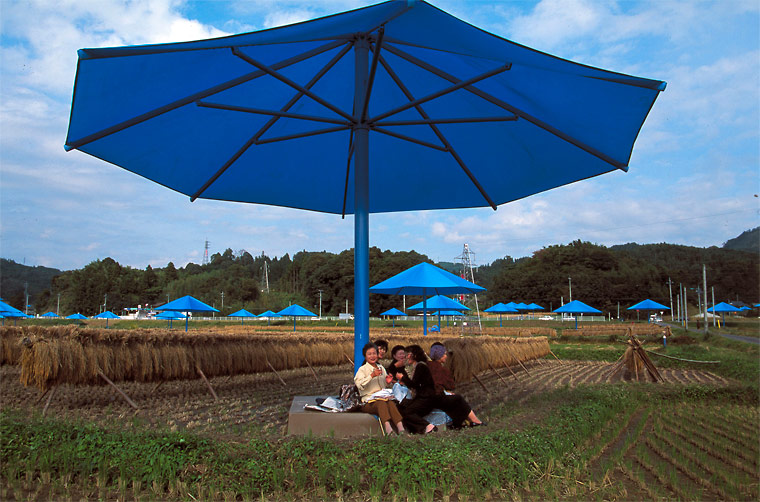 | クリスト | 行政の公聴会や住民のみなさんへの説明会では、 基本的に 自分でプロジェクトのことを説明しています。 イバラキ(茨城)にたくさんの傘を立てたときは 地権者の同意を得るために 一軒一軒の家を訪ねたのですが、 そこで出された6000杯の緑茶を飲みました。 |